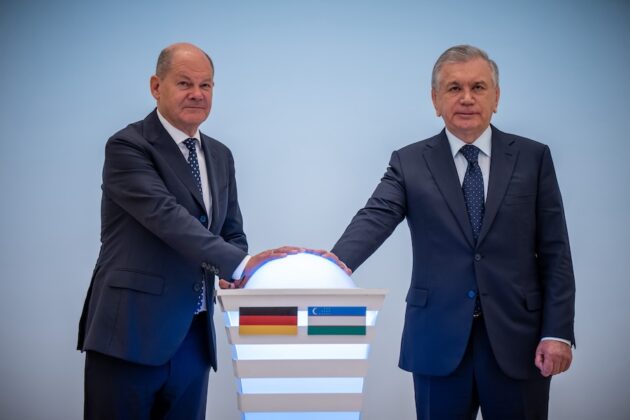 وفي السياق ذاته، وفي مستهل جولته في آسيا الوسطى، اتفق المستشار الألماني أولاف شولتس مع أوزباكستان على تعزيز التعاون في إدارة الهجرة إلى ألمانيا. ووقع اتفاقية بهذا الخصوص خلال زيارته لمدينة سمرقند، التي تعد واحدة من أقدم المدن التجارية على طريق الحرير والتي يبلغ عمرها قرابة 3000 عام. الاتفاقية تهدف إلى تسهيل جلب العمالة الماهرة، خاصة في مجالي الرعاية الصحية والتمريض، بالإضافة إلى تسهيل إعادة الأوزبكيين الذين ليس لديهم حق البقاء في ألمانيا.