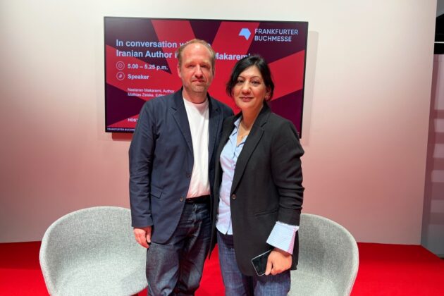 مکارمی روز گذشته، ۱۷ اکتبر، در گفتوگویی با ماتیاس تسایزکه در نمایشگاه کتاب فرانکفورت درباره چگونگی نگارش کتابها و مسئلهی سانسور در ایران گفت و بخشی از آخرین رمان خود را خواند.