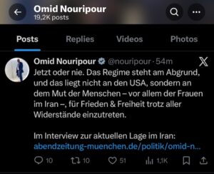 امید نوری‌پور، نایب‌رئیس بوندستاگ، با اشاره به ابعاد بی‌سابقه این اعتراضات احتمال تغییری بنیادین در ساختار قدرت ایران را مطرح کرده است.