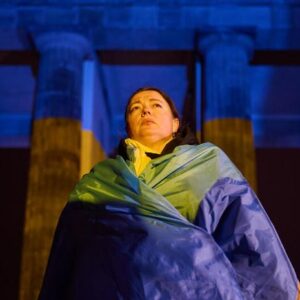 Жінка каже: “Україна є дійсно щитом для Європи, і Європа повинна це розуміти. Зараз в Європі всі готуються до того, що Путін може напасти, але давайте допоможемо Україні, маленькій моїй Україні, щоб вона справилась з таким великим агресором. Тому ми тут, ми не можемо мовчати, ми повинні кричати на весь світ про ту біду, про ті ракети, які летять, тому що Росія – терорист. І це повинен знати весь світ!”.