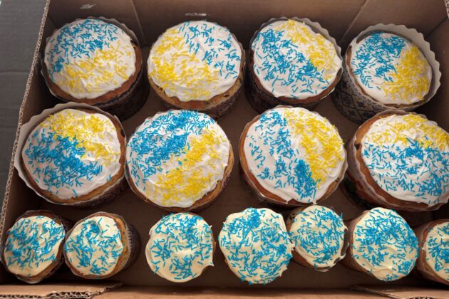 Зоряна – одна з учасниць волонтерської ініціативи “Смаколики за донат” у німецькому Дармштадті. Кожної суботи місцеві активісти проводять демонстрації на підтримку України, де пропонують українські страви за пожертви. Зазвичай Зоряна пече для суботніх мітингів пиріжки, однак до Великодня у неї спеціальне замовлення: домашні паски.