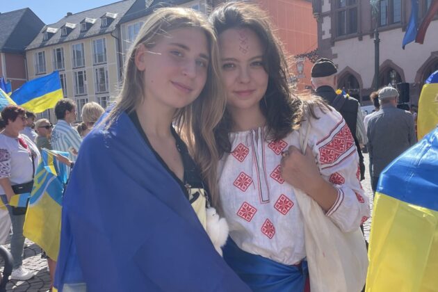 Близько 350 людей, за оцінкою поліції, зібралося у центрі Франкфурта на мітинг до 33-ї річниці Незалежності України. Організатори очікували значно більше учасників – можливо, причиною стала спека: повітря прогрілося щонайменше до +32 градусів. Частина людей сховалася у затінку, інші завбачливо принесли з собою парасольки від сонця.