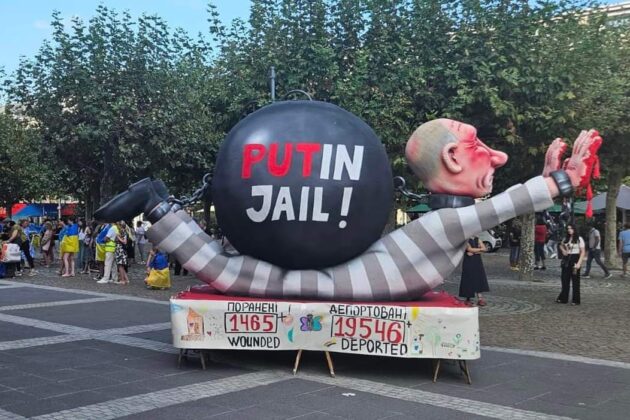 Волонтери встановили на площі інсталяцію з російським президентом Володимиром Путіним, відповідальним за ці злочини. Величезна фігура зображує Путіна у костюмі вʼязня та кайданках. Інсталяцію доповнили плакатами з кількістю вбитих, поранених і депортованих до Росії українських дітей. Учасники мітингу також тримали в руках плакати з надписами “Путін – убивця”, “Росія вбиває дітей щодня” та іншими.