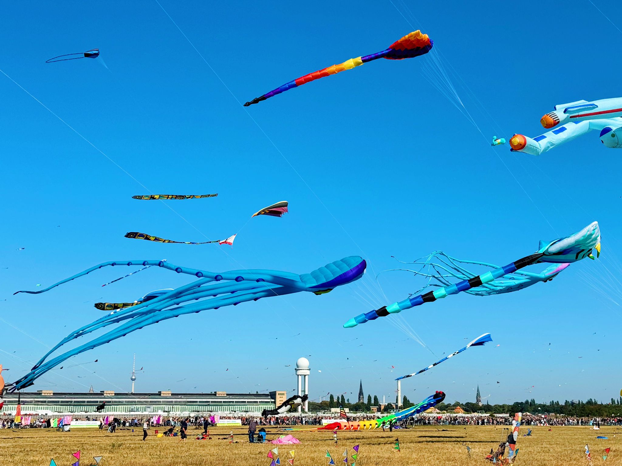Один із найвидовищніших та найулюбленіших заходів Берліна – Фестиваль повітряних зміїв – відбувся в столиці цими вихідними, 21-22 вересня 2024 року. На території колишнього аеропорту Темпельхоф зібралися майже 80 майстрів-виробників повітряних зміїв із Бельгії, Нідерландів, Італії, Польщі, Таїланду та інших країн, а також понад сто тисяч відвідувачів.