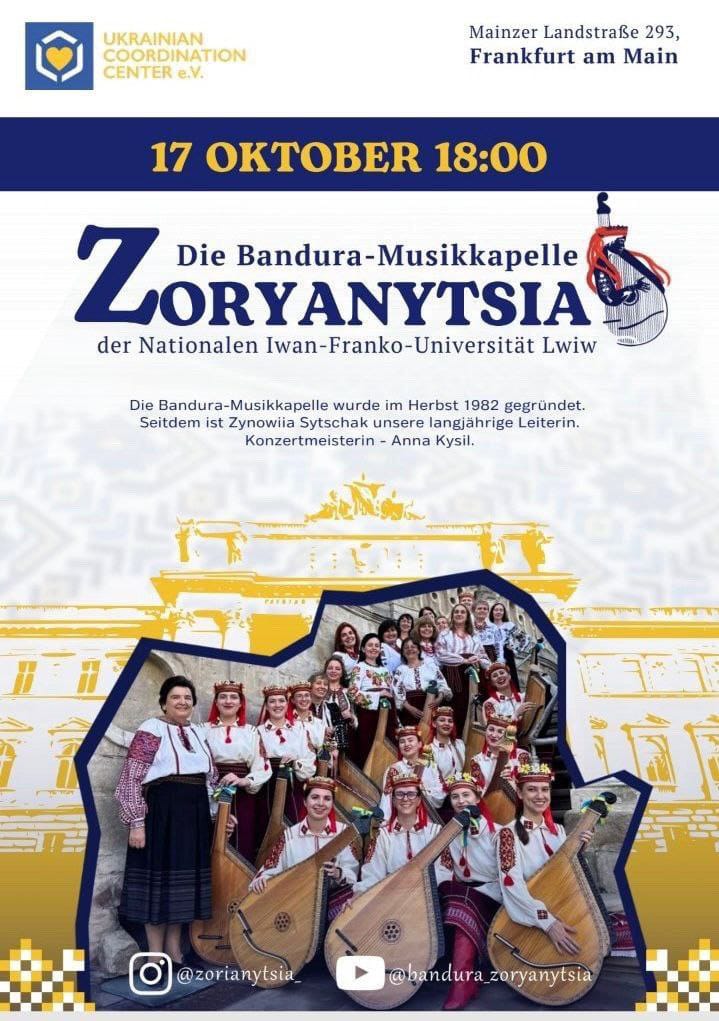 Всі заході відбудуться у приміщенні Українського координаційного центру за адресою: Mainzer Landstraße 293, Frankfurt am Main.
