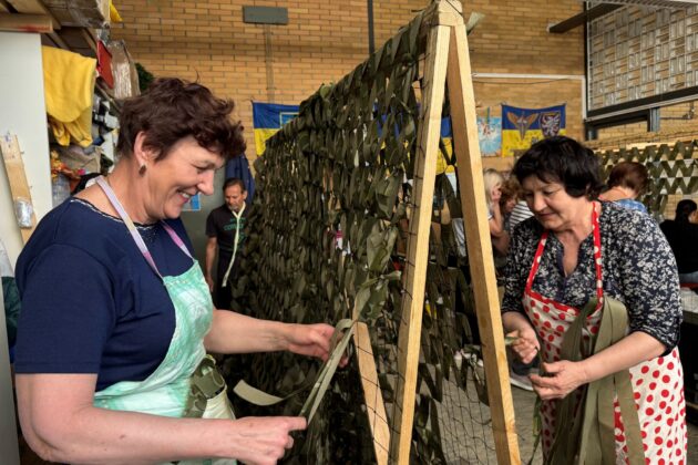 “Кікімори”, нашоломники, маскувальні сітки – українці у Гіссені налагодили виробництво камуфляжних виробів для ЗСУ. Щотижня волонтери відправляють в Україну сотні квадратних метрів захисного полотна. Їхні сітки використовують військові бригади по всьому фронту, від Херсона до Сумщини: накривають бліндажі, автівки, техніку. Розповідаємо, хто такі “Майстрині та майстри Гіссена“ і як працює ця німецько-українська ініціатива.