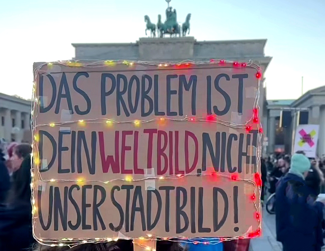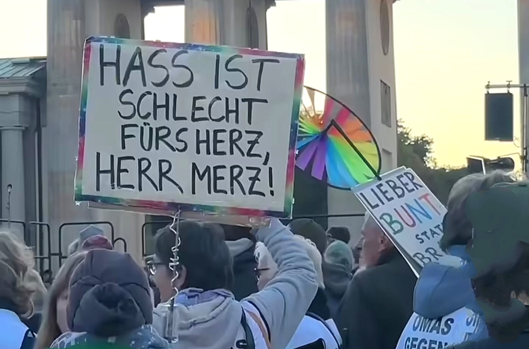 Вже через декілька днів мешканці Берліна влаштували масштабну демонстрацію перед Бранденбурзькими воротами. Виступаючі на сцені виступили зі звинуваченнями канцлера у тому, що він не достатньо дистанціювався від партії AfD, якщо дозволяє собі подібні висловлювання. Учасники утворили море вогнів за допомогою запальничок та ліхтариків мобільних телефонів. На плакатах було написано “Мерц, це жарт?”, “Забороніть AfD зараз!” та багато інших.