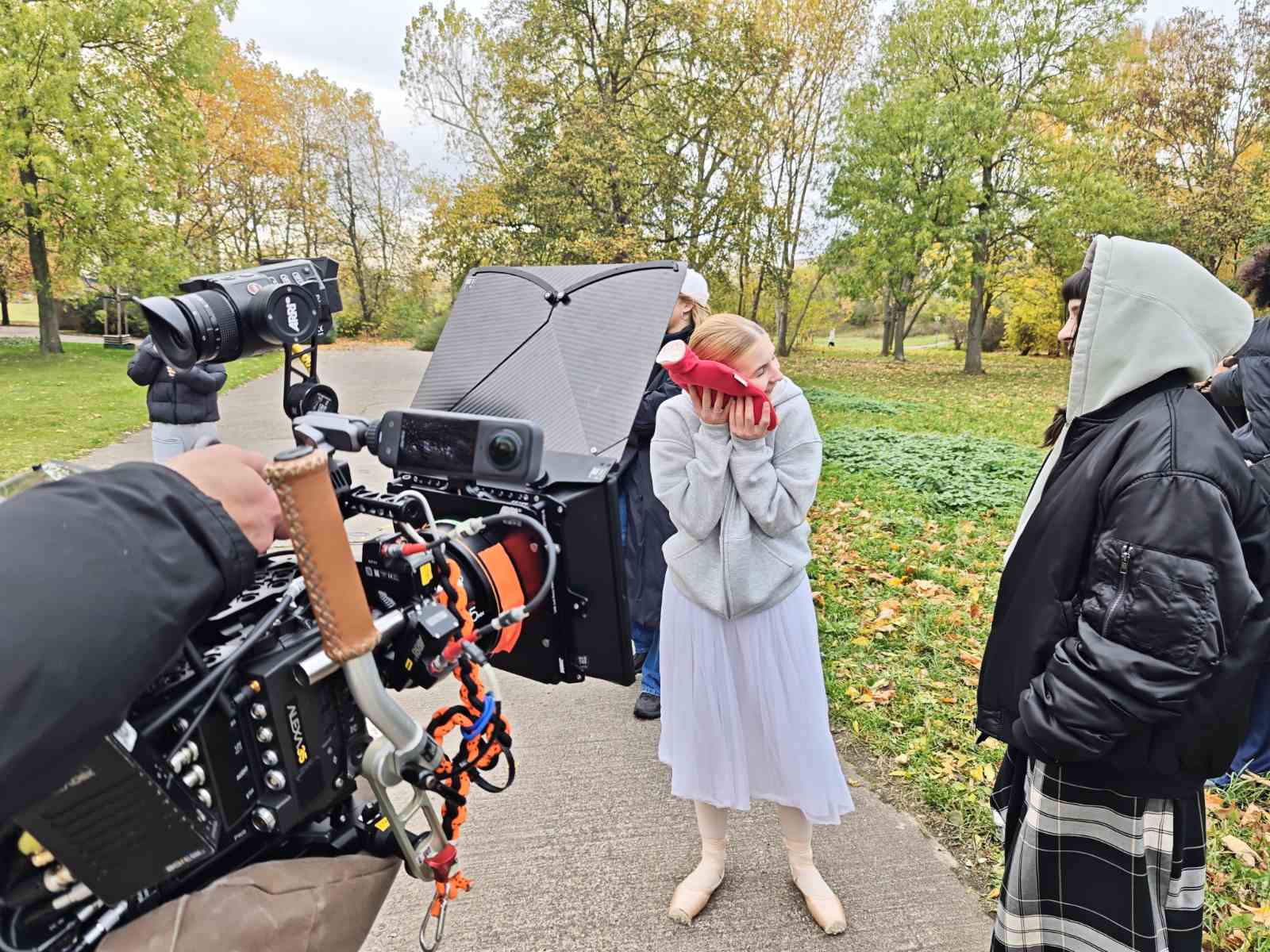 Марія Стрельницька, яка виконала роль балерини, мужньо танцювала на холоді й вщент стерла пуанти на бетонному покритті марцанівських доріжок. Добре, що мама взяла запасні.