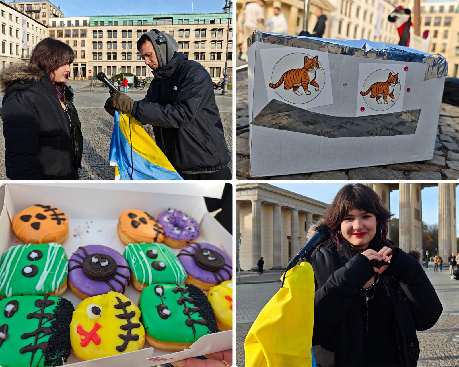 У фільмі дівчина теж збирає гроші для України і з Берліну підтримує київських друзів по відео з телефону: “Привіт, незламні! Як ви там?”