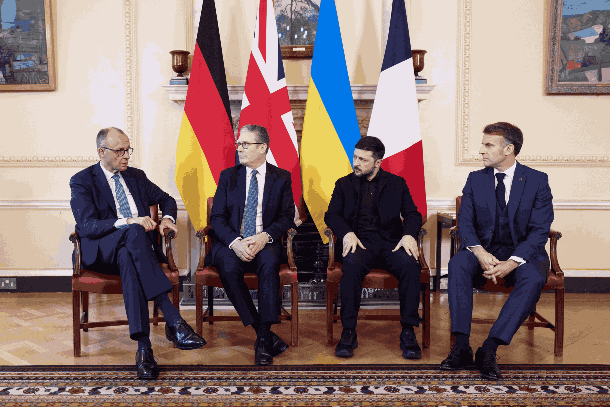 Сьогодні у Лондоні, у резиденції британського прем’єр-міністра на Даунінг-стріт, відбулася зустріч лідерів Німеччини, Великої Британії та Франції із президентом України Володимиром Зеленським. Глави держав зібралися обговорити переговори щодо припинення війни з Росією.
