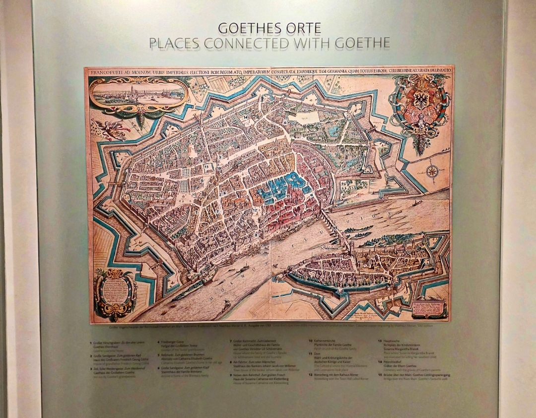 Наприклад, Церква Святої Катерини (Katharinenkirche) на Хауптвахе, в якій хрестили Гете. Або пам’ятник Гете роботи Людвіга Шванталера у самому центрі міста. Або ж відома оглядова”Вежа Гете”, яку було названо саме на честь нього.
