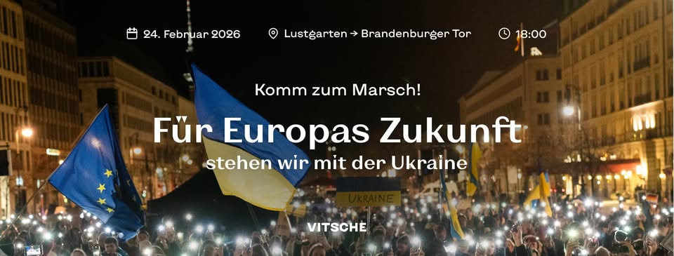 Марш 24 лютого – з 18:00 до 19:00 від Люстгартена до Бранденбурзьких воріт. Мітинг – з 19:00 до 20:00.