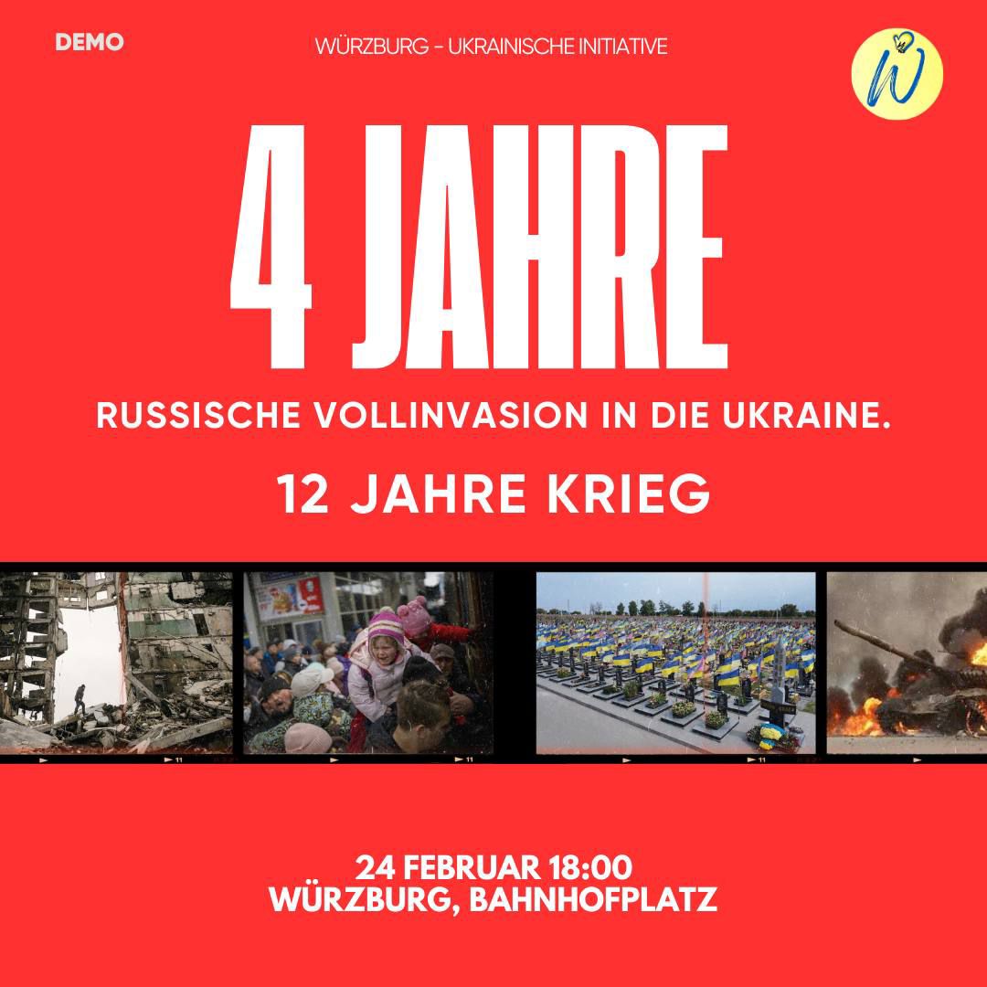 Марш у Вюрцбурзі відбудеться 24 лютого о 18:00 від Банхофлац. Організатори – “Würzburg – Ukrainische Initiative” спільно з “Mrija. Verein zur Unterstützung der Ukraine” – просять приносити українську символіку та ліхтарики. А також – запросити на ходу друзів, колег і сусідів.