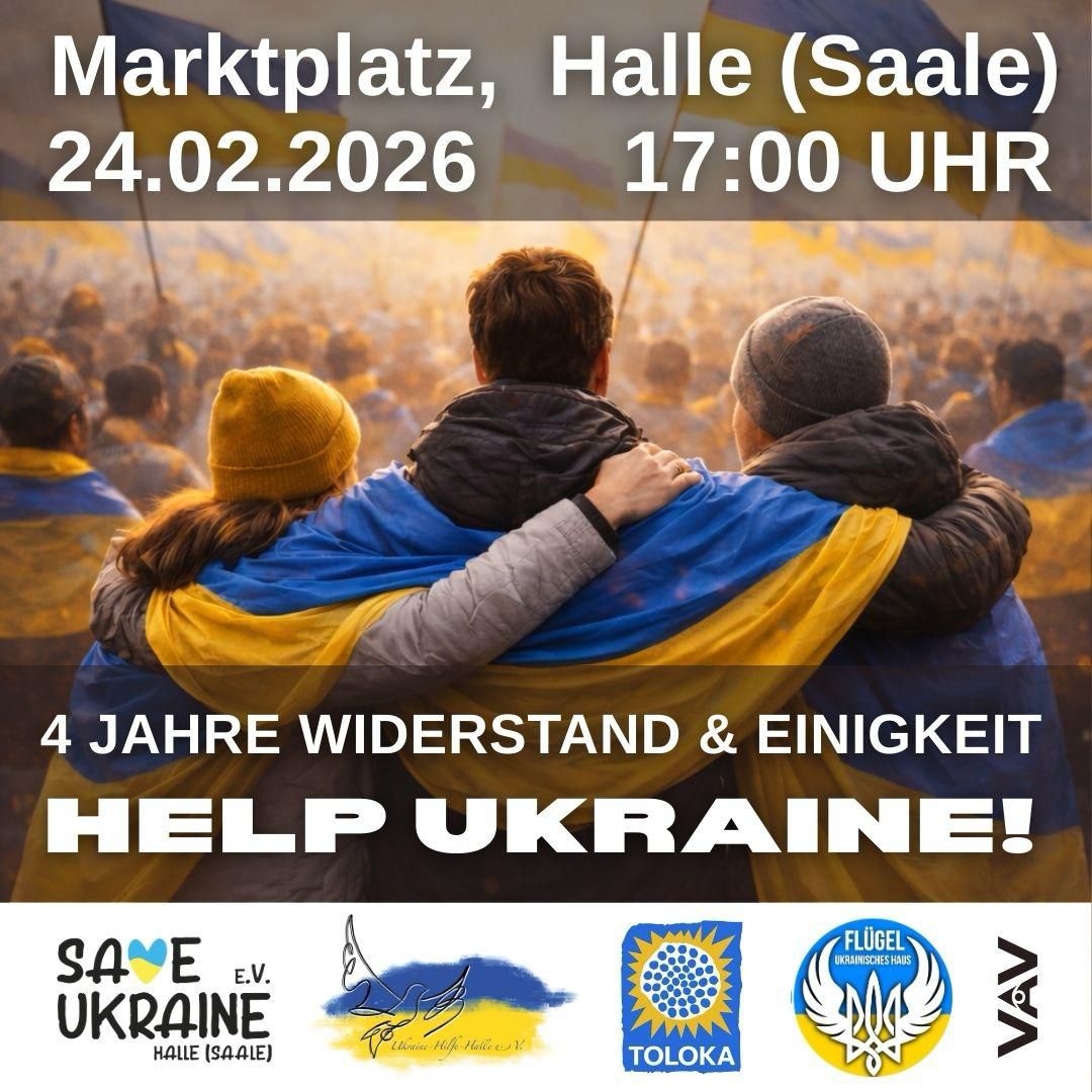 24.02 о 17:00 на Марктплац перед ратушею утворять живий ланцюг. Зі свічками та символікою українці та друзі України у Галле говоритимуть про силу у єдності. Також на заході збиратимуть донейшени на генератори для України.